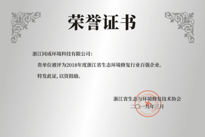 2018年度浙江省生態環境修復行業百強企業