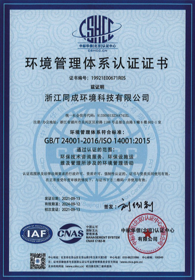 環境管理體系認證證書